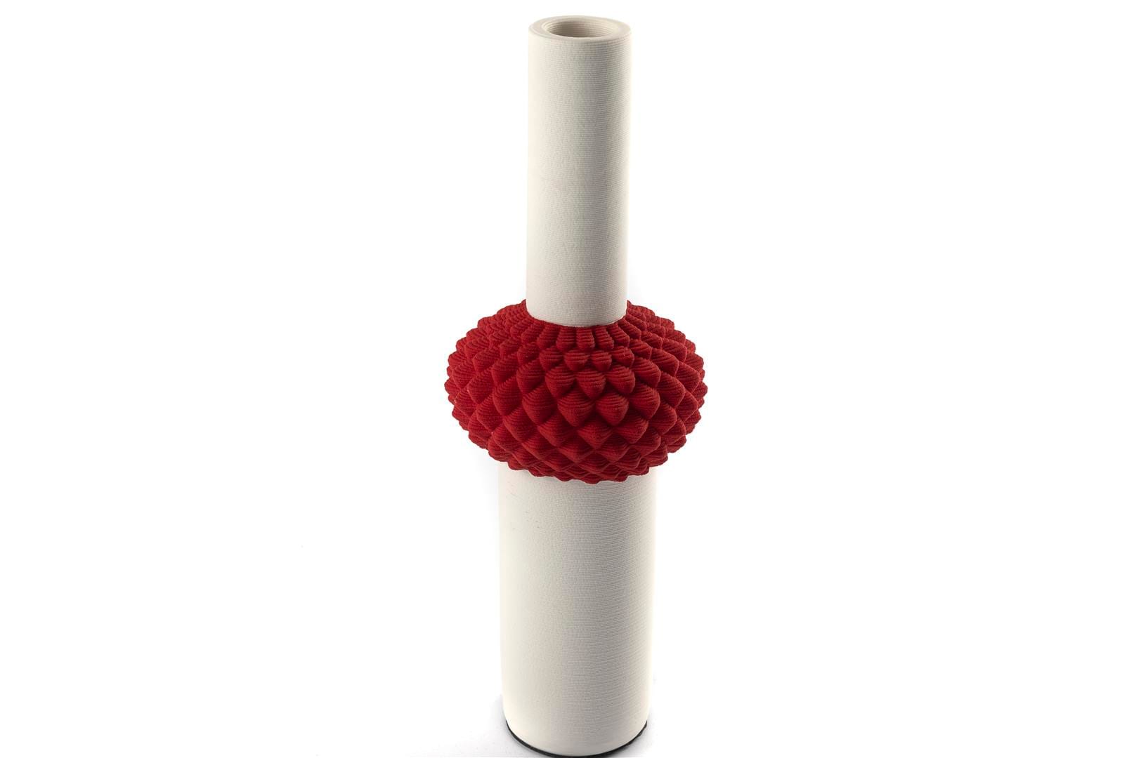 Beyaz Kırmızı Porselen Vazo