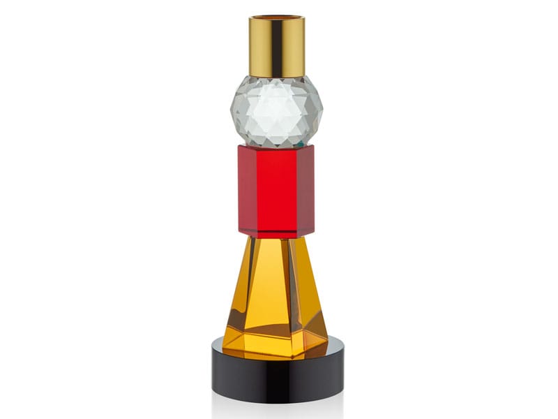 Manes Sarı Kırmızı Sıyah Tabanlı Mumluk 6x6x17 Cm